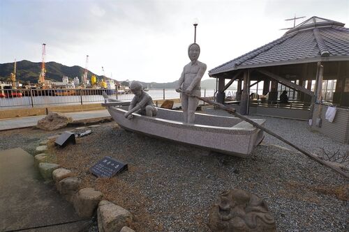 南あわじ市福良港(うずしおドームなないろ館隣)には、旅の疲れを癒す足湯「うずのゆ」があります。屋根付きなので、雨の日でも大丈夫ですね!まずはうずの湯からご紹介します。さすが、うずしおクルーズ船の発着所ですね。円形の足湯の真ん中にはにうずが…