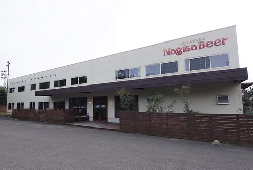 三段壁からも近い、 いそぎ公園付近 に「ナギサビール」の工場はありました。入り口の扉を開けると・・・工場内は、いきなりおしゃれなスペースでした♪レンガづくりのカウンターに、温かみのある木目調の壁。まずは、こだわりのビールを生み出す「ナギサビール…