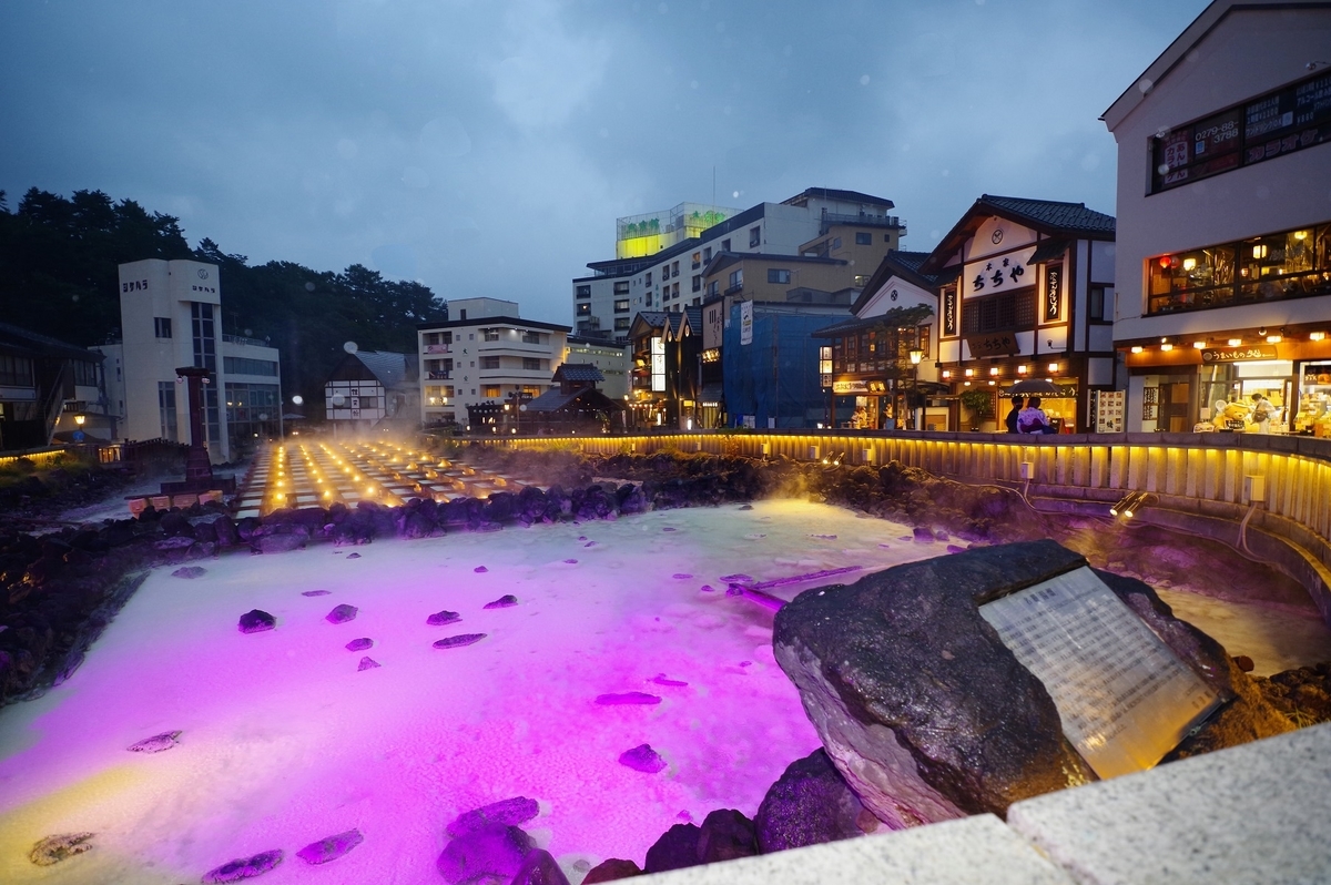 それにしても、日が暮れた後の湯畑はめちゃ幻想的。
