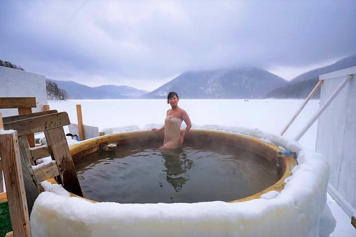 北海道・然別湖畔温泉「しかりべつ湖コタン」凍った湖の上に氷の露天風呂